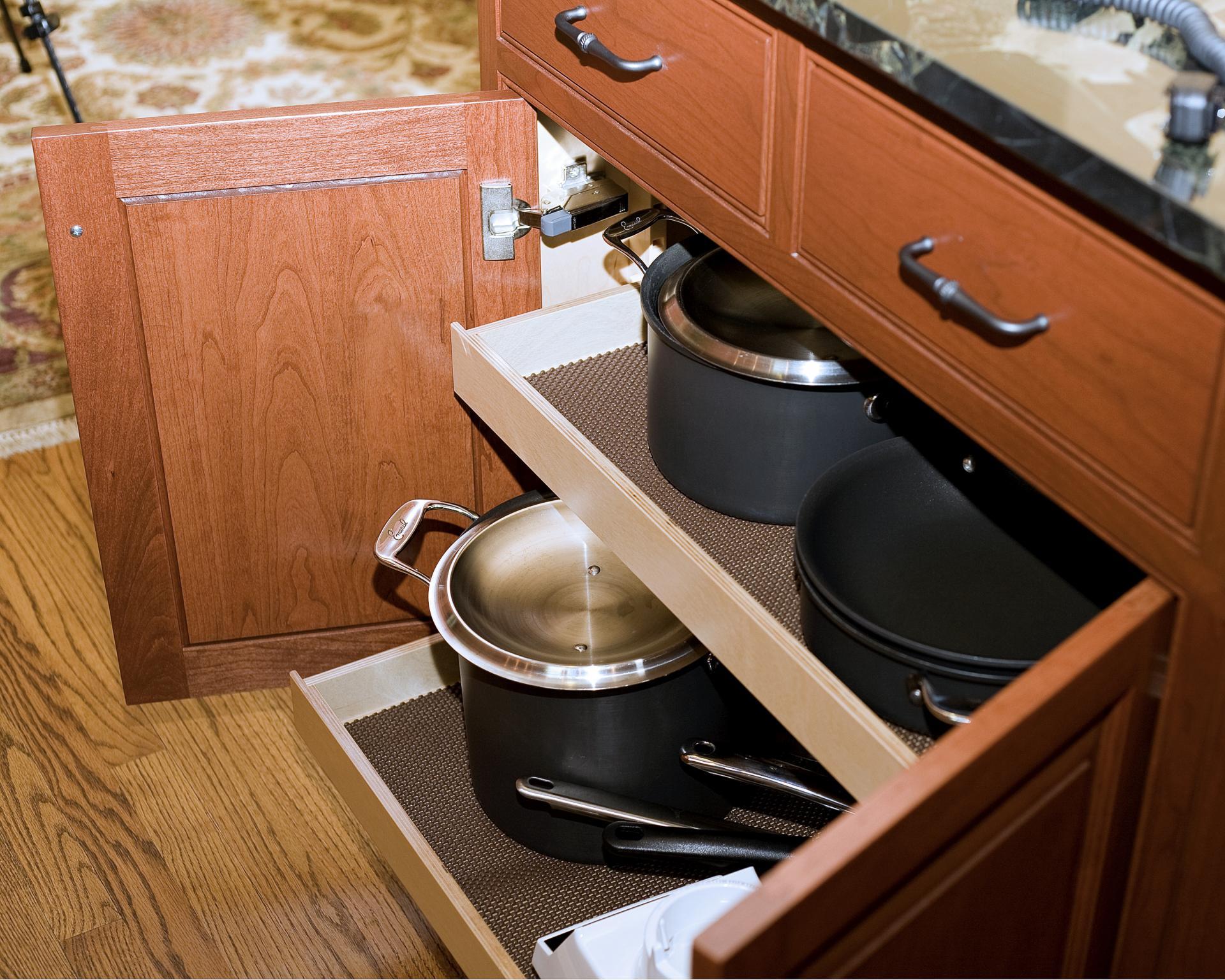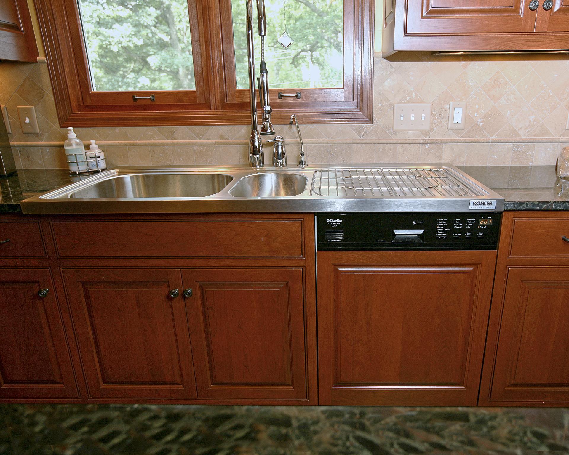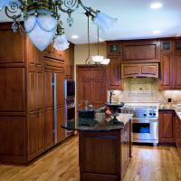 As in many homes, the original kitchen suffered from poor design, builder grade stock cabinets and unattractive laminate countertops. With spacious 9’ ceilings and the client's desire to have the home's centerpiece flow with other previous remodeling efforts, we came up with a design that fits this beautiful home and the client's lifestyle. Custom Cherry cabinetry, beaded and inset doors and drawers, built-in refrigerator, integrated paneled ends, granite countertops and high-end appliances make up just some of the features in this kitchen.